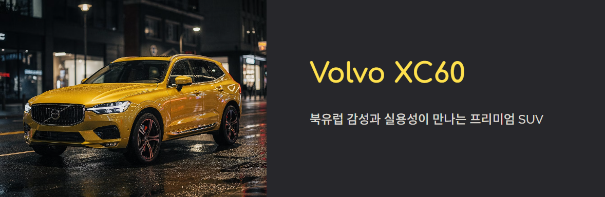 Volvo XC60는 중형 프리미엄 SUV 시장에서 안정성과 실용성, 디자인의 균형을 갖춘 모델로 평가받고 있습니다. 세련된 북유럽 감성의 인테리어와 외관, 그리고 패밀리카 — 혹은 출퇴근용/여행용 패키지로서의 활용성 덕분에 많은 사람들이 관심을 갖고 있는 자동차입니다. 특히 전장(차체 길이)과 실내 공간, 안전 및 편의 사양 등은 XC60의 매력 포인트입니다.
