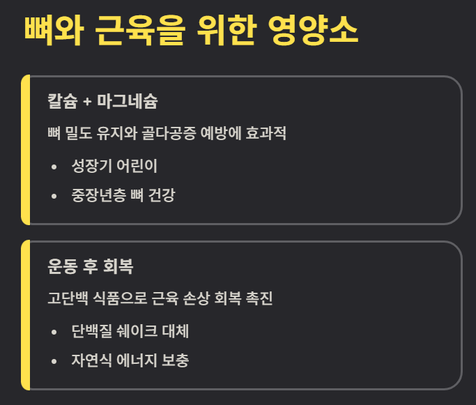 칼슘과 마그네슘이 함께 들어 있어 뼈 밀도 유지에 도움을 줍니다. 성장기 어린이부터 골다공증이 걱정되는 중장년층까지 꾸준히 섭취하면 좋습니다.