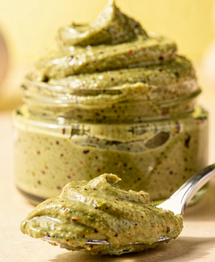 피스타치오 스프레드는 볶은 피스타치오를 곱게 갈아 크림처럼 만든 스프레드입니다. 빵, 크래커, 팬케이크, 요거트 등에 발라 먹거나 디저트 소스로 활용할 수 있어 활용도가 매우 높습니다. 특히 이탈리아식 젤라또나 크림 디저트에 자주 사용됩니다.