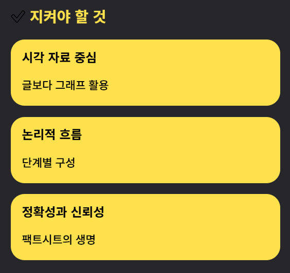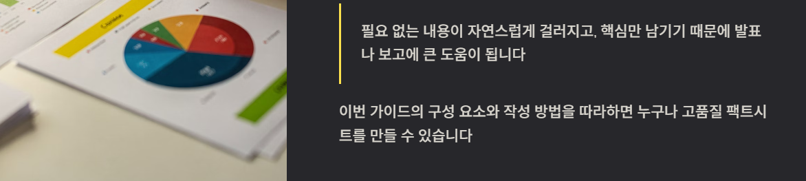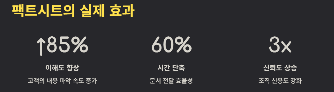 실제로 팩트시트 형식으로 문서를 만들어보면 정보 정리 능력이 크게 향상됩니다.