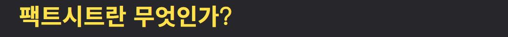 팩트시트는 **사실(Fact)**과 **요약 문서(Sheet)**가 합쳐진 말로,