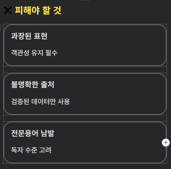 → 독자가 가장 궁금해할 내용 중심으로 구성